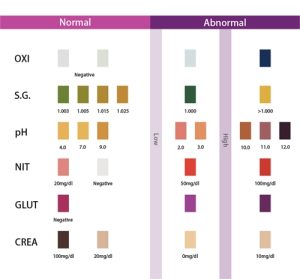 This test has 12 Test strips inside a cup as well as a Temperature strip and Adulteration strip.